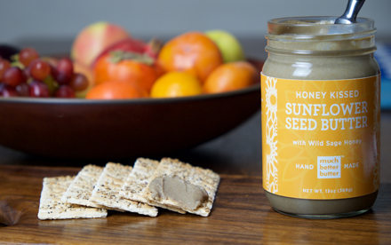 Ever since my son and daughter were old enough to shove food in their mouths, I have been making tasty, nutritional food with seasonal ingredients that the whole family can enjoy together. Once they were in school it became more challenging to create delicious, protein rich food for lunch boxes. I created Much Better Butter- a sunflower spread that the kids love. It's organic, perfectly roasted, and school approved. Perfect for sandwiches, veggie dipping or just eating straight out of the jar!