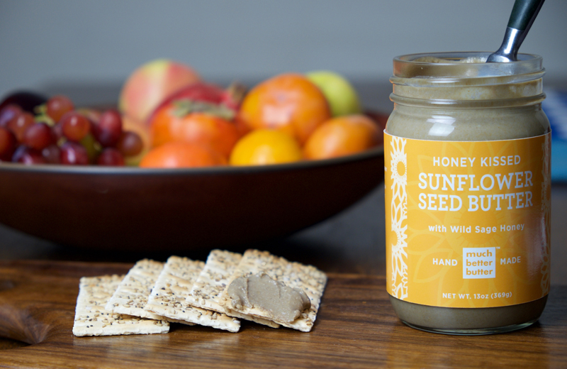 Ever since my son and daughter were old enough to shove food in their mouths, I have been making tasty, nutritional food with seasonal ingredients that the whole family can enjoy together. Once they were in school it became more challenging to create delicious, protein rich food for lunch boxes. I created Much Better Butter- a sunflower spread that the kids love. It's organic, perfectly roasted, and school approved. Perfect for sandwiches, veggie dipping or just eating straight out of the jar!